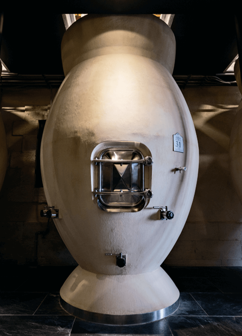 そんな果敢な造り手の筆頭が、格付け5級の「シャトー・ポンテ・カネ」だ。卓越したカベルネ・ソーヴィニヨンの産地として知られるポイヤック村でビオディナミ栽培をベースとしたワイン造りを始め、2010年に格付けシャトーとして初の認証を取得。天体の動きに合わせて農作業を行い、土に微生物が宿るよう、馬で耕作。選果や除梗は手作業、自 社畑の土を使ったアンフォラや発酵 槽は電子制御による温度管理を行わず、電気を使用しない醸造に挑む。 もちろん、いずれのプロセスにも大変な労力を要する。「このテロワールとそこから生まれるブドウに敬意を払い、そのポテンシャルを最大限に発揮するため」。父が始めた偉大なチャレンジを引き継ぎ、CEOとしてシャトーを統括するジャスティン・テスロンの言葉は軽やかだ。天と地の産物であるワイン、それを創り出すのは“人の手”にほかならない。